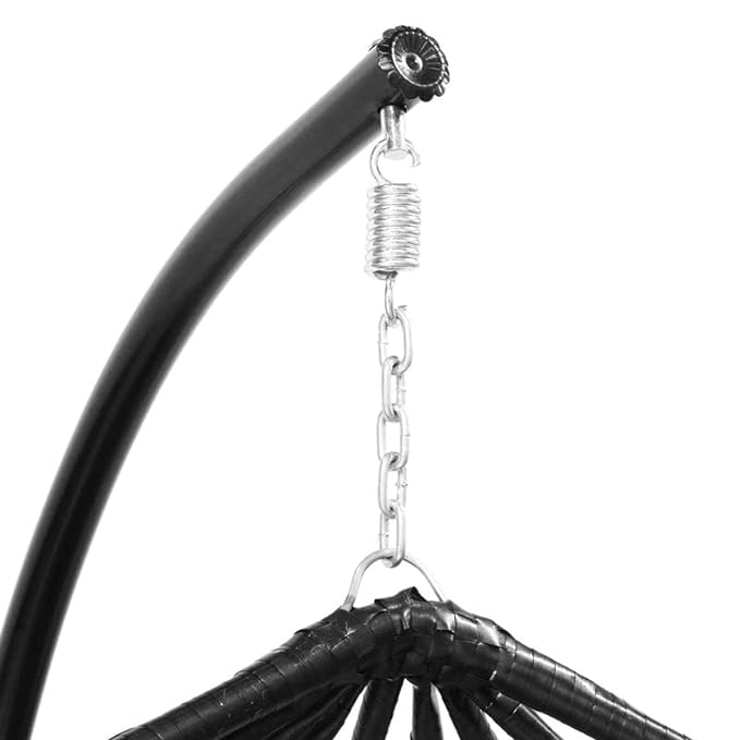 • Ideal for Deck, balcony & more - Unique swinging Chair is the perfect addition to any space outside, like a backyard patio, deck, in a sun-room or garden, or near a pool, or outdoor bar • Premium Fluffy Cushion - It comes with a Soft deep fluffy cushion, perfect for you to snuggle in on a warm and sunny day, with a book and a cold coffee • User Indoor or Outdoors - It is sturdy & safe for you to sit in, and it will be a great addition to your indoor or outdoor furniture • All-Weather Construction - Constructed from poly nylon wrapped around a heavy iron frame for weather protection, strength and durability • Hand WOVEN and Hand CRAFTED WICKER: Add a playful look to your patio with this outdoor hanging swing stand chair for adults. Deck up your balcony with this all-weather synthetic wicker with a powder-coated iron frame. The heavy-duty antique bronze finish swing can hold upto 110-130 kgin weight. Your garden or living room will look stunning with this swing chair. Enjoy the outdoors with this easy to manage patio decor in any weather