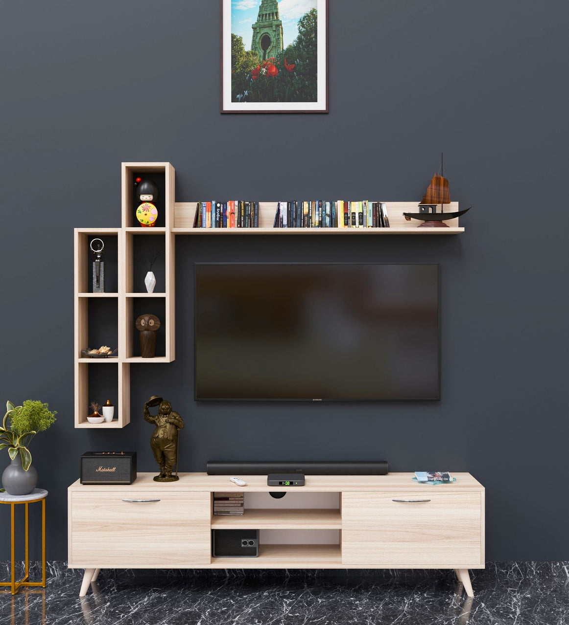 vendorSpyder CraftSPYDERCRAFT Matte Finish M5+D4 TV Entertainment Unit with Shelves| Color:...Upgrade Your Entertainment Area with the Spydercraft Matte Finish M5-D4 TV Entertainment Unit with Shelves in Noce LyonBring elegance and organization to your living space...