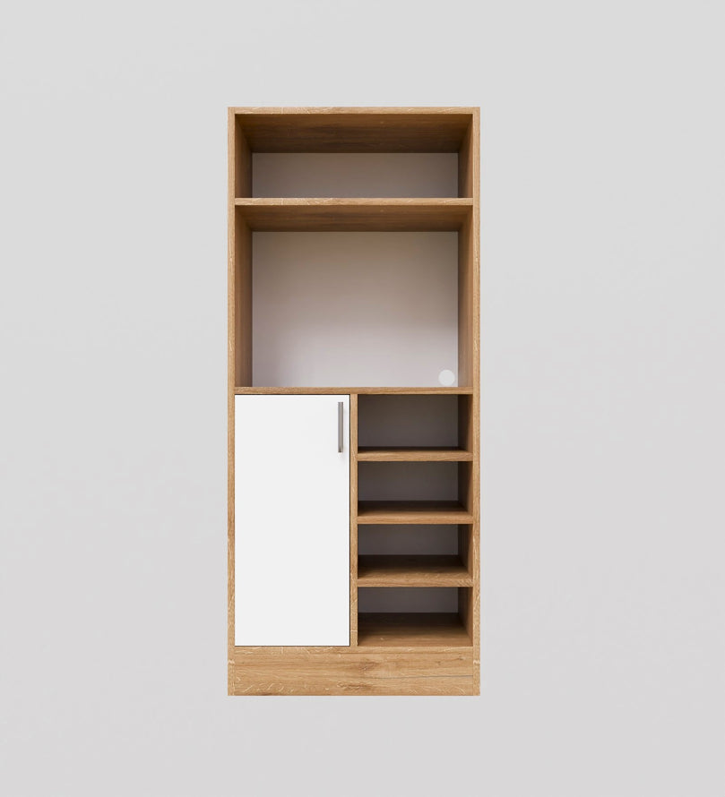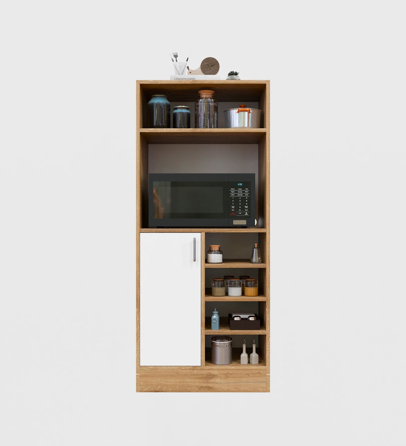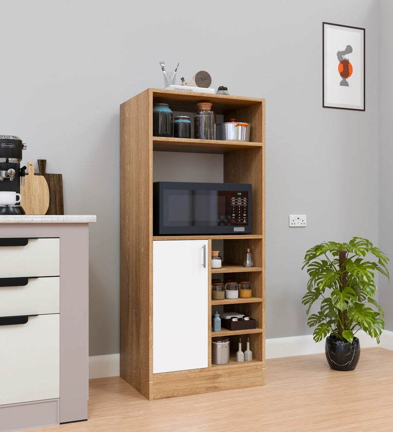 Upgrade your kitchen with this beautifully designed multipurpose kitchen cabinet in an elegant Canyon Oak and White finish. Designed for modern homes, this cabinet offers both style and functionality, making it an ideal addition for organizing kitchen essentials, cookbooks, crockery, or even pantry items.