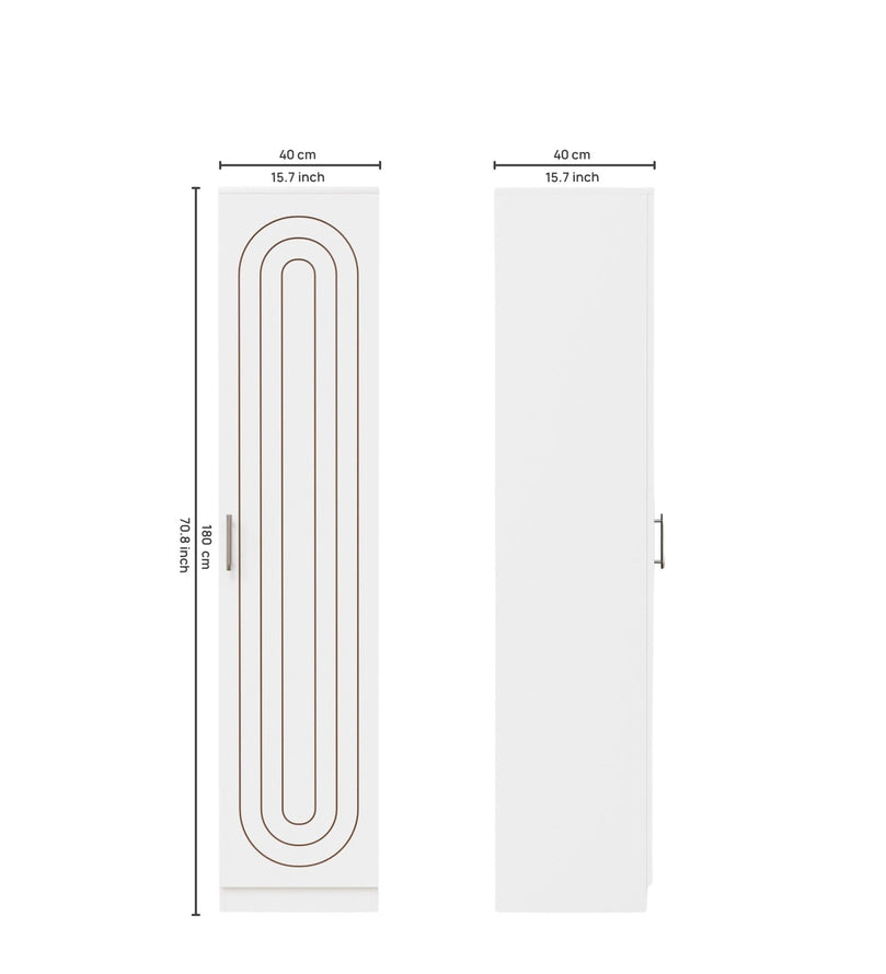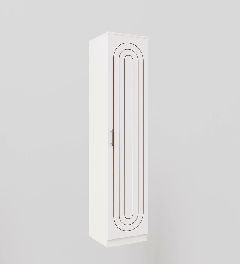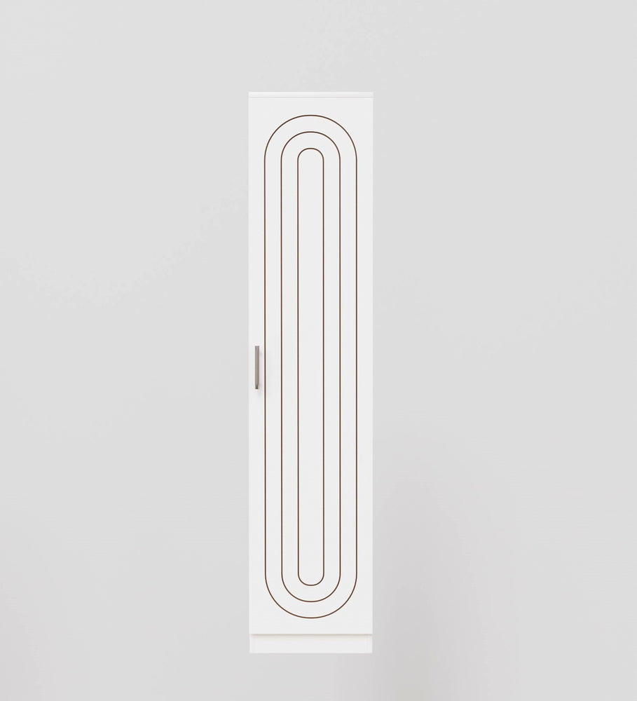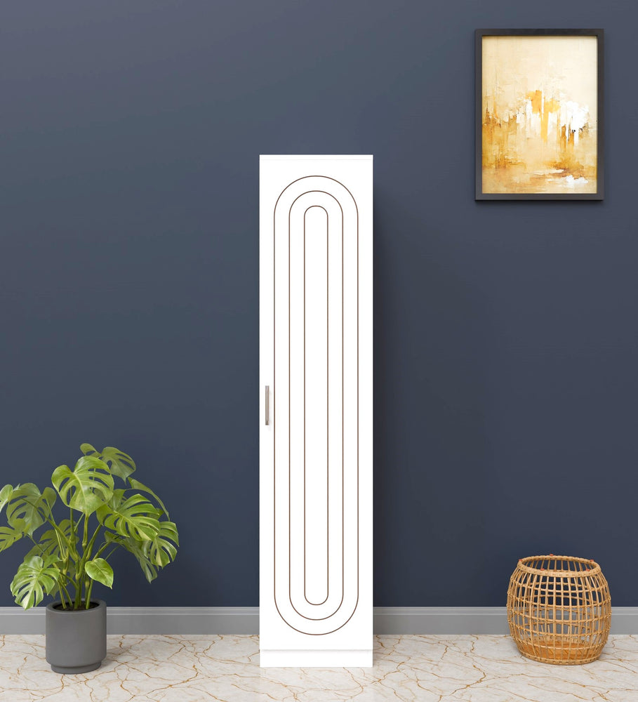 Elevate your home décor with this sleek and modern single-door wardrobe, designed to blend effortlessly into any space. Crafted with a premium matte White finish, this wardrobe features elegant copper-toned geometric patterns that add a touch of sophistication and style.