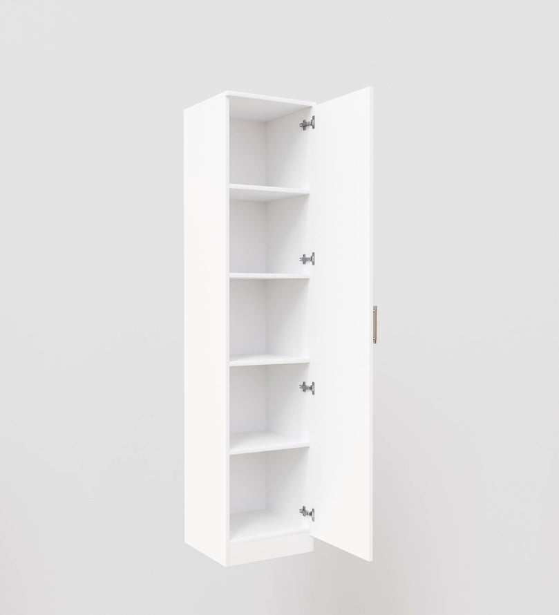 The door is equipped with a smooth handle and efficient hinges for easy opening and closing. Inside, you'll find well-organized shelves that provide ample storage for clothes, accessories, or other essentials, keeping your space clutter-free.