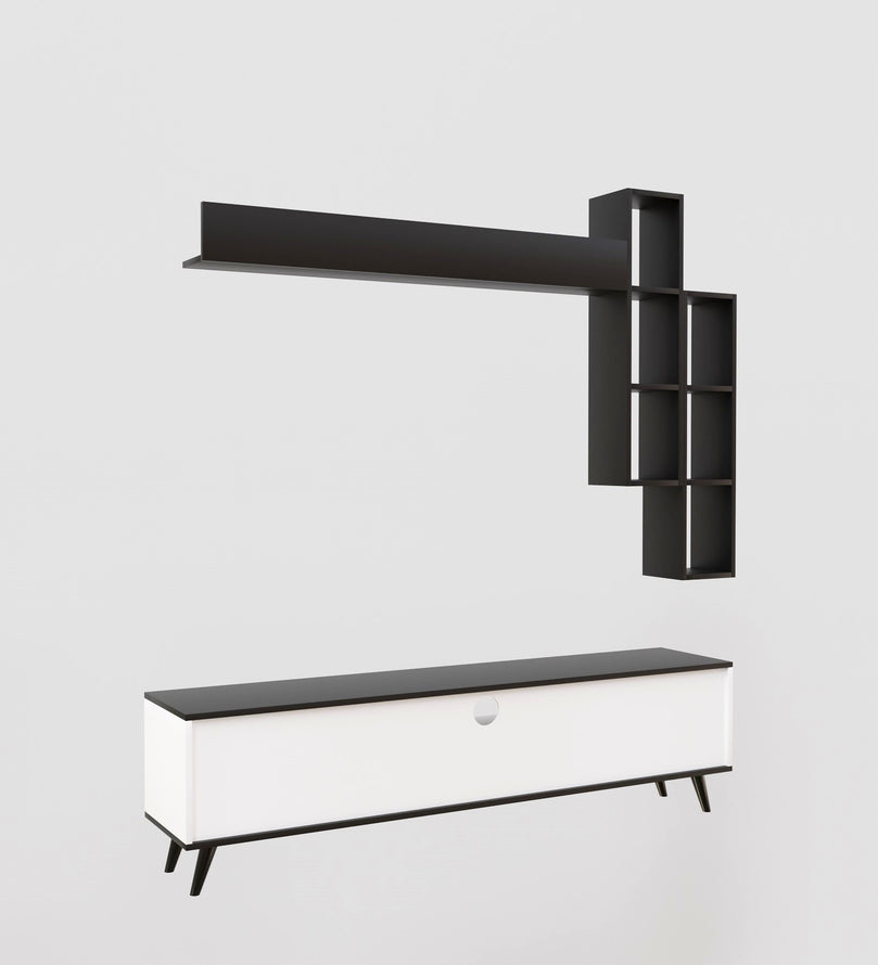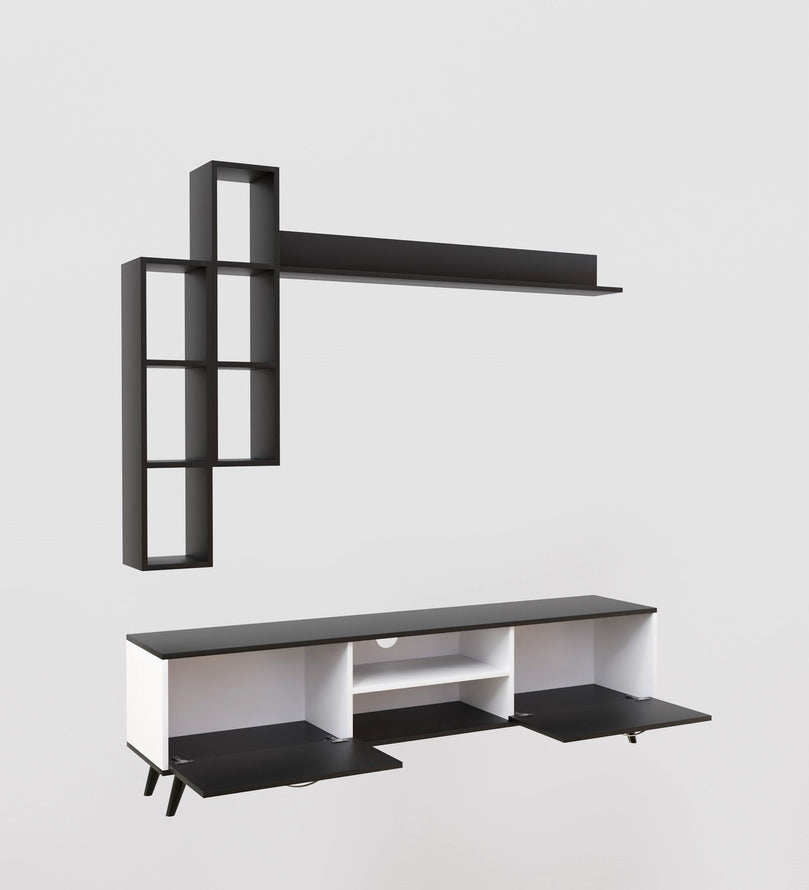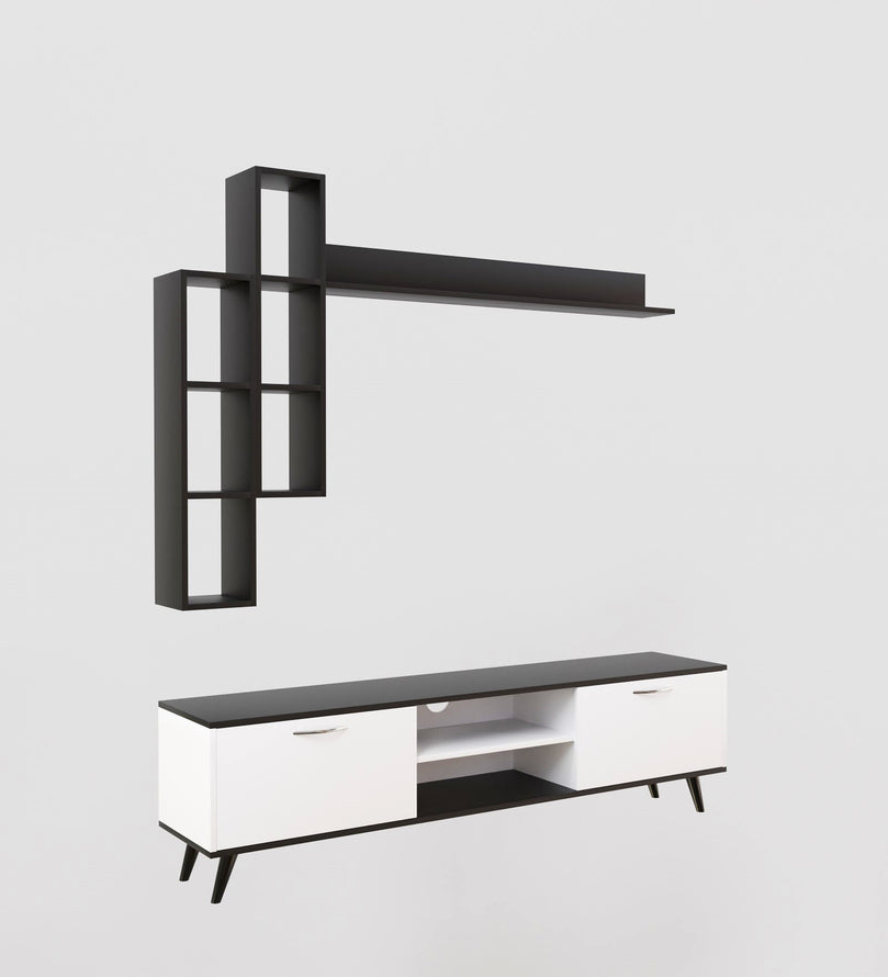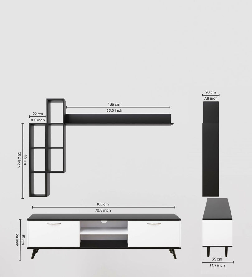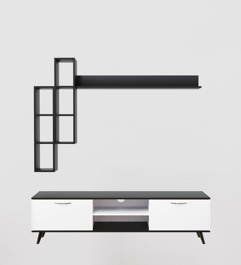 Upgrade your living space with this sophisticated Black & White TV Unit, a perfect blend of style and functionality. Designed to accommodate large-screen TVs, this entertainment unit features ample storage, floating shelves, and a sleek black and white contrast that adds a modern touch to any home décor. Whether you`re organizing media accessories or displaying decorative pieces, this TV cabinet ensures a clutter-free and stylish setup.