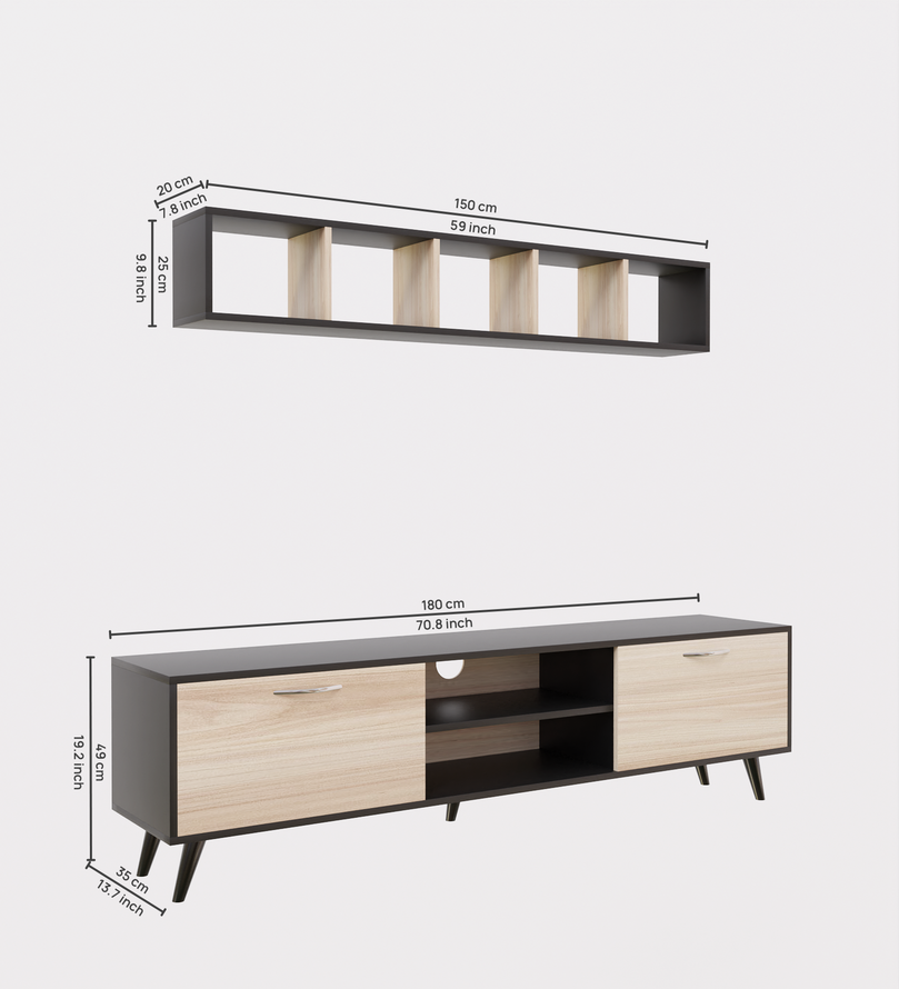 Ample storage is provided with multiple shelves and compartments, giving you plenty of space to store and organise your TV, media players, gaming consoles, books, and decorative items. No more cluttered living spaces, this entertainment centre has got you covered.
