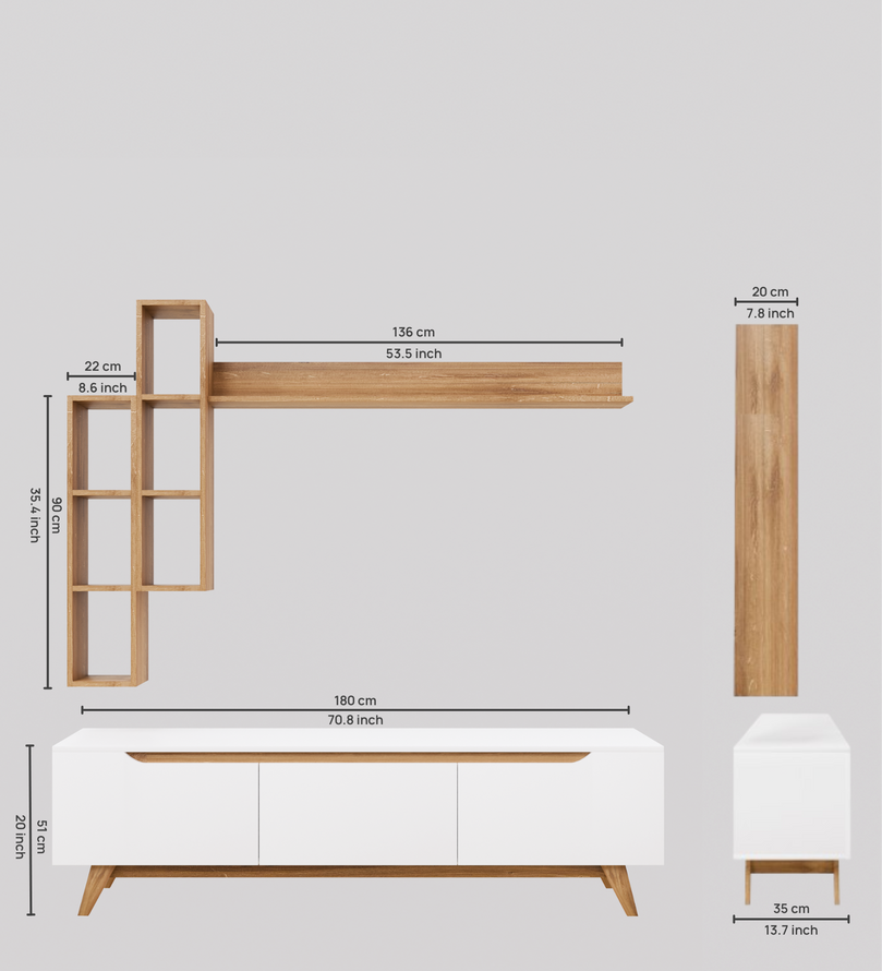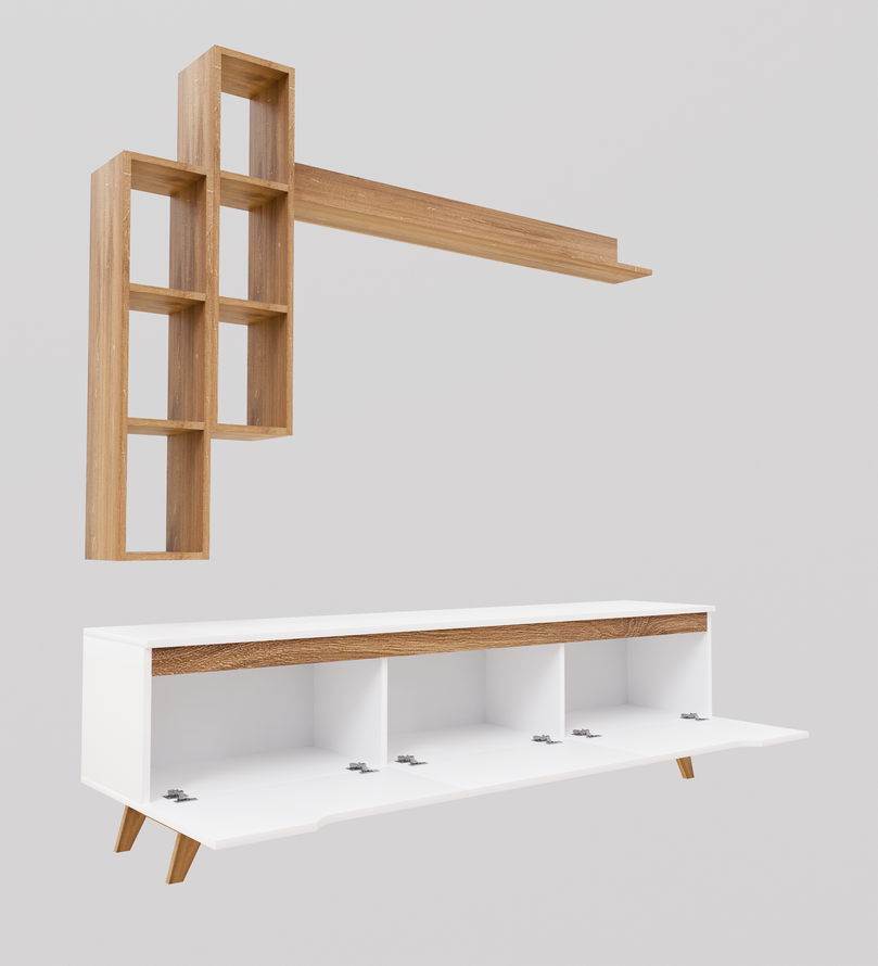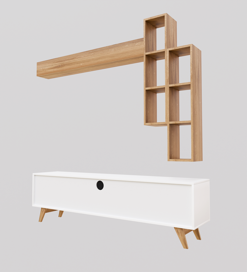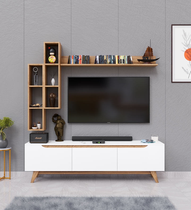 Upgrade your living space with this modern and elegant TV Unit, designed to offer both functionality and style. Crafted from high-quality engineered wood, this unit features a sleek combination of white and natural wood finish, making it a perfect fit for contemporary interiors.