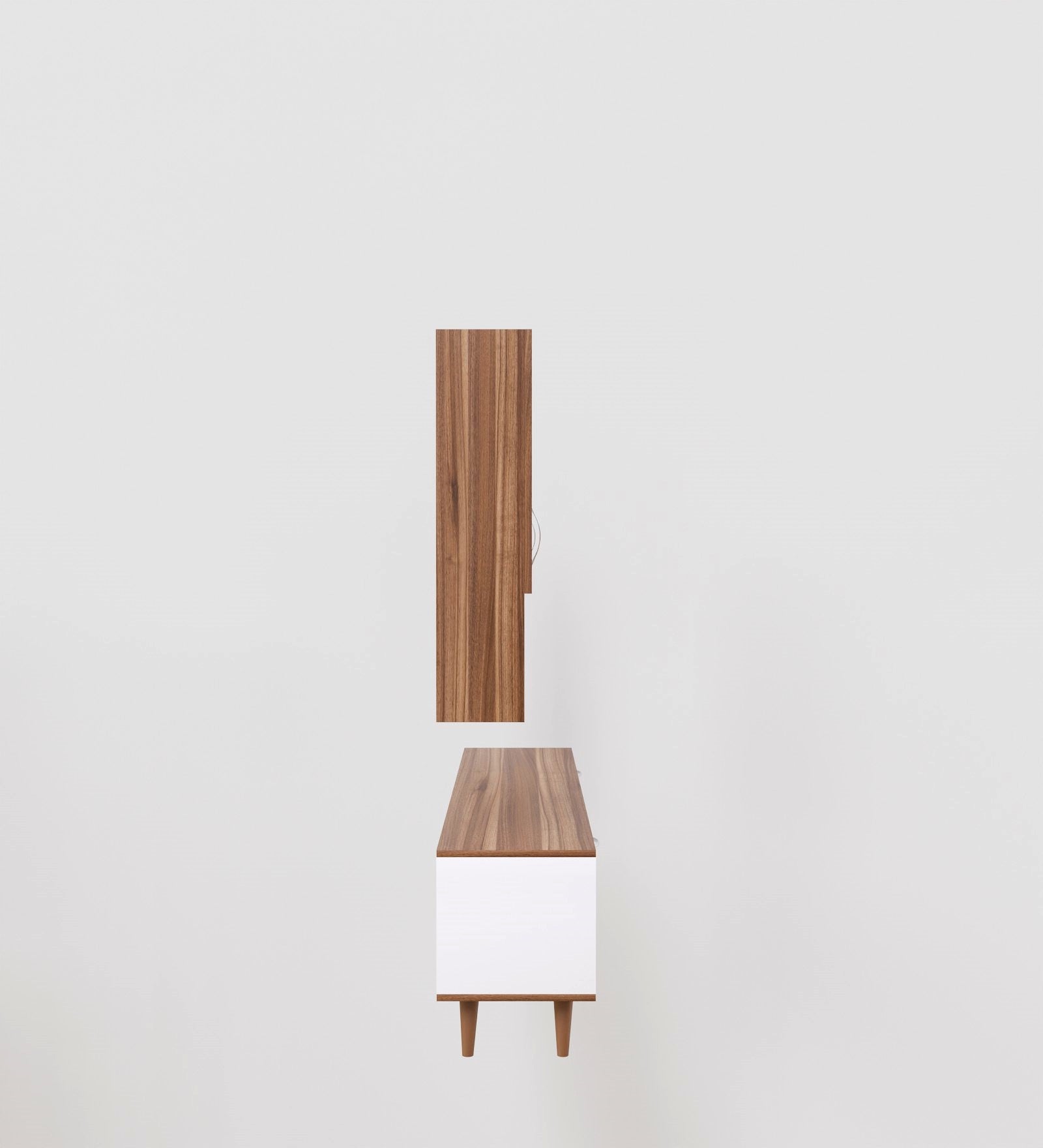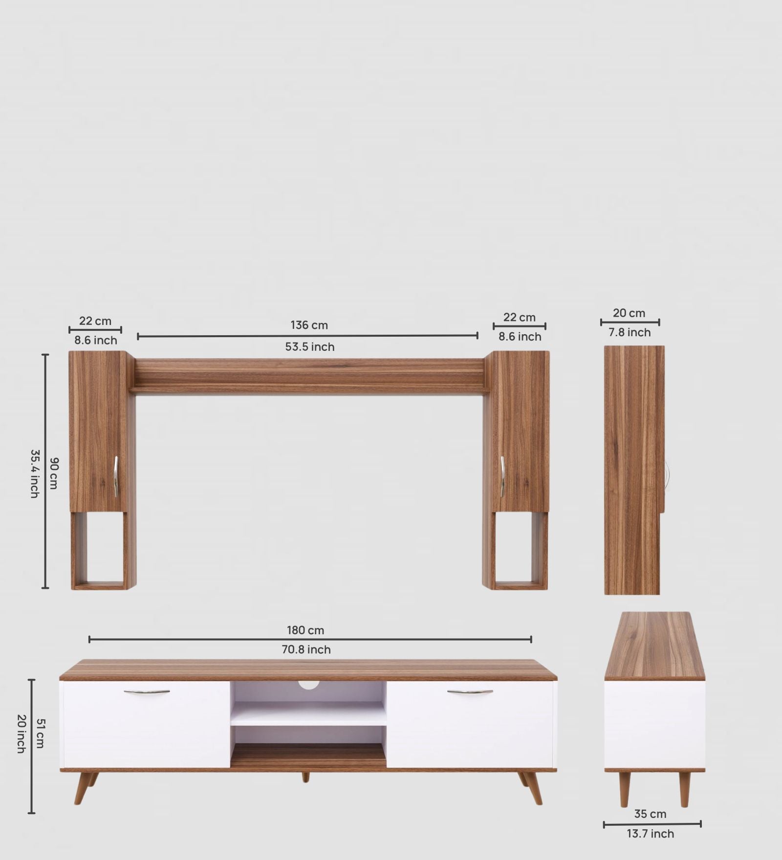 Enhance your living space with the modern and functional Noce Lyon & White TV Unit, designed to complement contemporary interiors. This elegant entertainment unit is perfect for organizing your media essentials while adding a stylish touch to your home. Featuring a spacious TV display area, closed cabinets, and multiple open shelves, this TV cabinet provides ample storage for books, gadgets, and decorative items. The sophisticated combination of Noce Lyon woodgrain finish and crisp white panels adds warmth and contrast, making it a perfect fit for any décor theme.