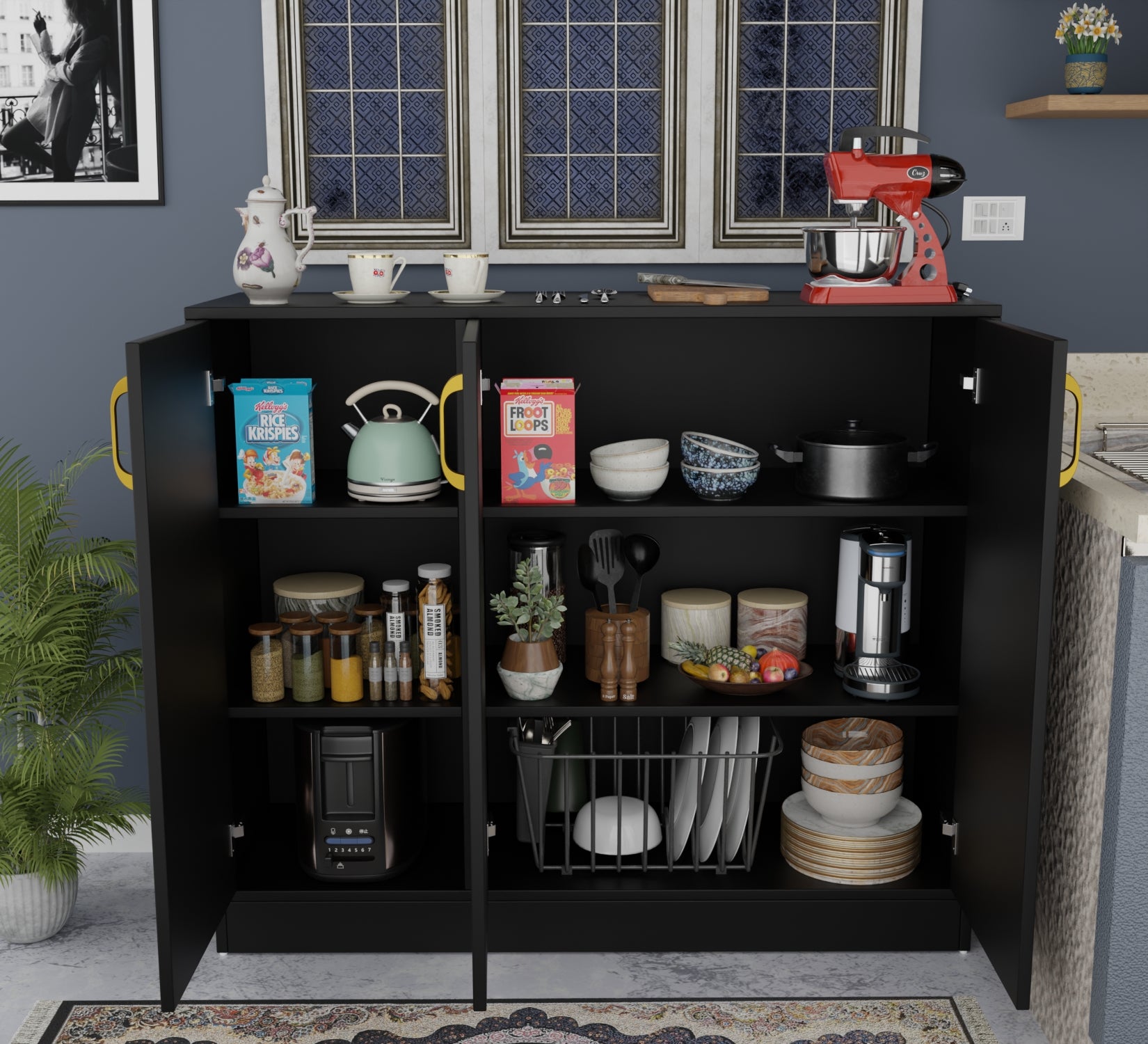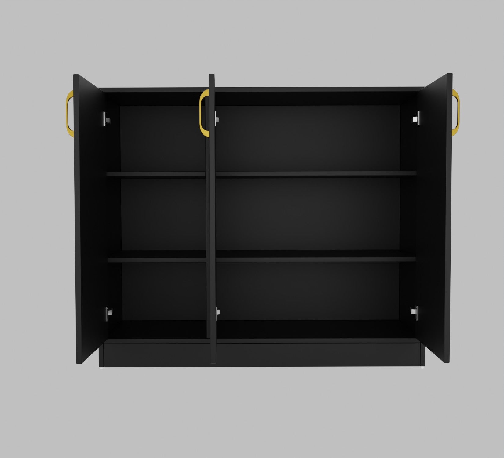 The cabinet is accented with premium metal handles that provide both durability and visual contrast. Its spacious internal storage makes it ideal for organizing household essentials, books, tableware, or accessories while maintaining a clutter-free environment.