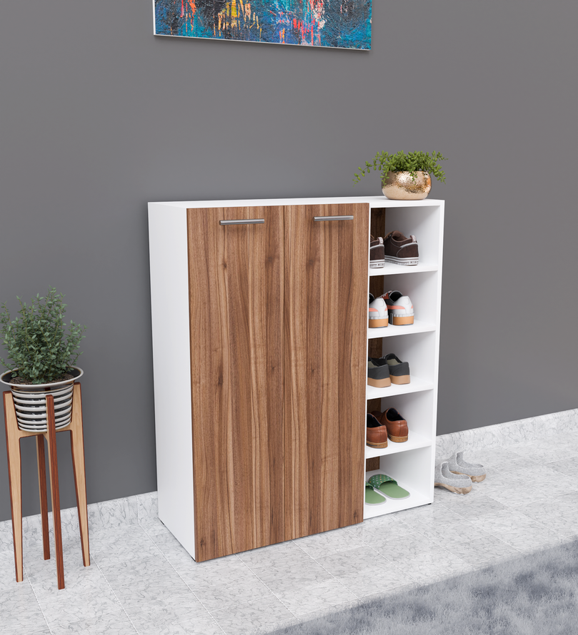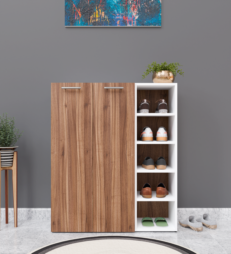 - Ample Storage: Open shelves for easy access to daily footwear and a closed cabinet for hidden storage.