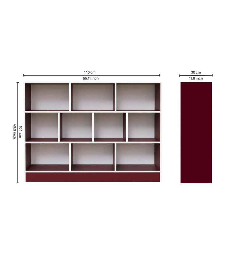 Transform your home or office with this stylish and spacious 10-cube bookshelf from Spydercraft. Designed for maximum organization and aesthetic appeal, this bookshelf is the perfect addition to any modern, contemporary, or minimalistic décor. The sleek burgundy frame and crisp white interior create a bold yet sophisticated color combination that will elevate any living space.