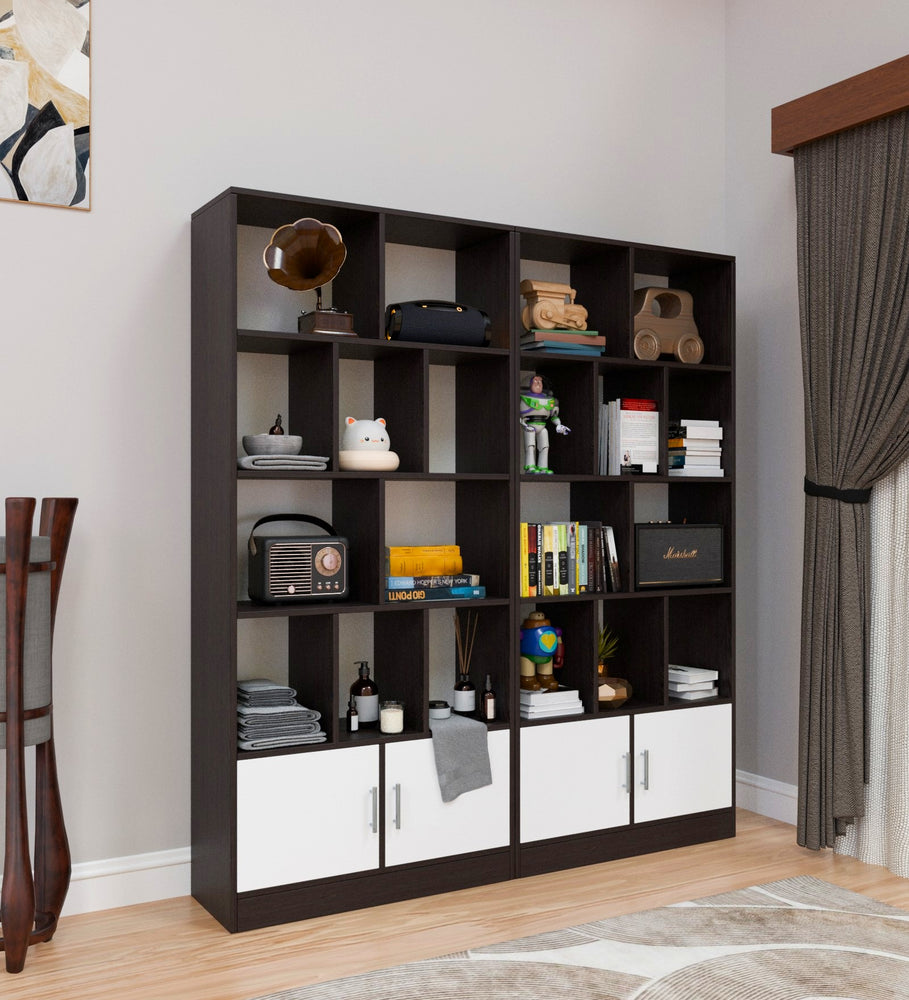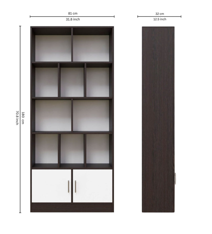 Upgrade your home or office with this modern wenge brown bookshelf, a perfect blend of elegance and functionality. Designed with 8 open shelves and 2 closed cabinets, this bookcase offers ample space for storing books, decorative items, collectibles, and other essentials while keeping clutter out of sight.