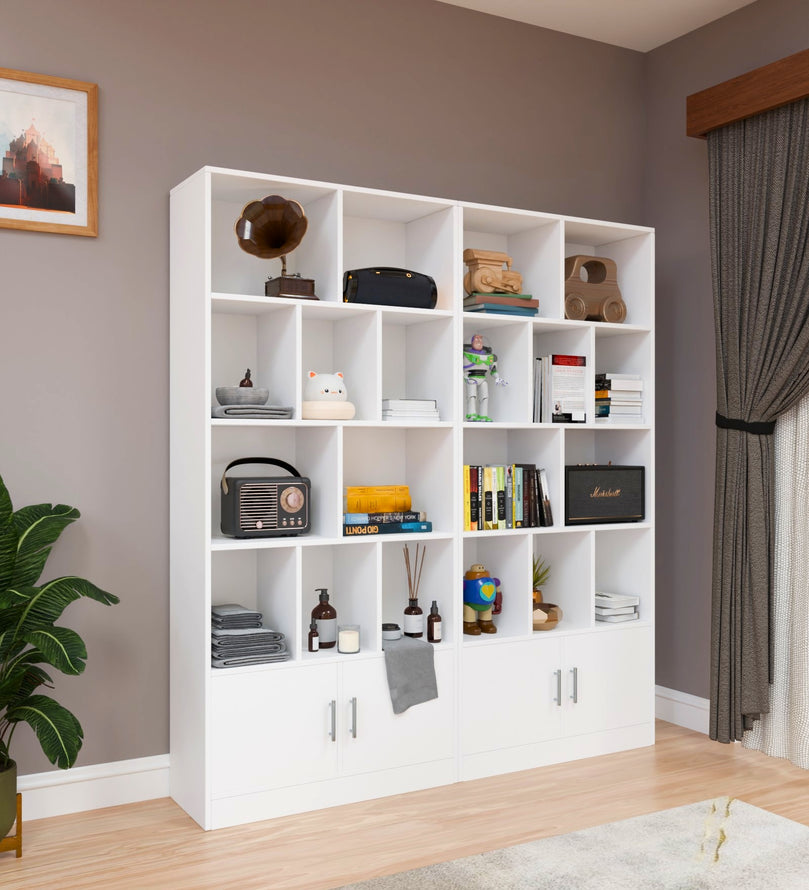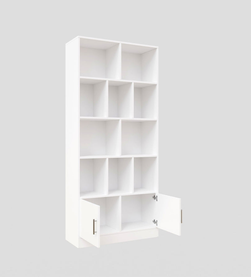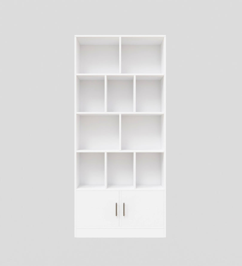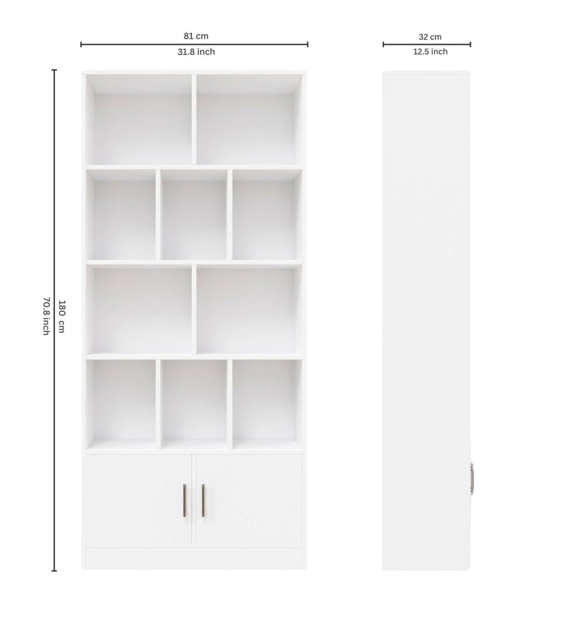Upgrade your home or office with this modern white bookshelf, a perfect blend of elegance and functionality. Designed with 8 open shelves and 2 closed cabinets, this bookcase offers ample space for storing books, decorative items, collectibles, and other essentials while keeping clutter out of sight.