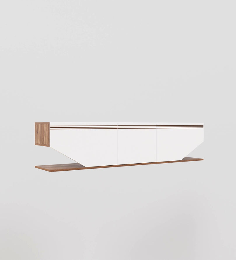 Add a touch of modern luxury to your home with this premium TV unit from Spydercraft. The sleek geometric design, combined with a sophisticated Noce Lyon and white finish, makes it a statement piece in any contemporary living room.