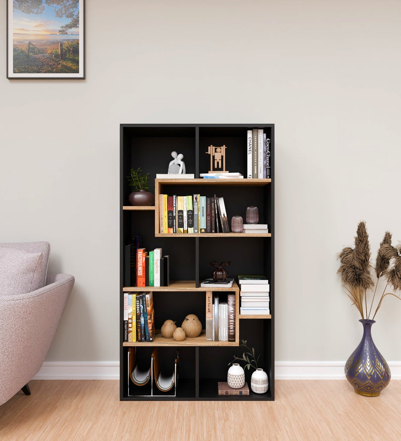 - Premium Build Quality: Made from high-quality engineered wood, this sturdy bookcase ensures durability and features a smooth black and canyon oak finish for an elegant look.