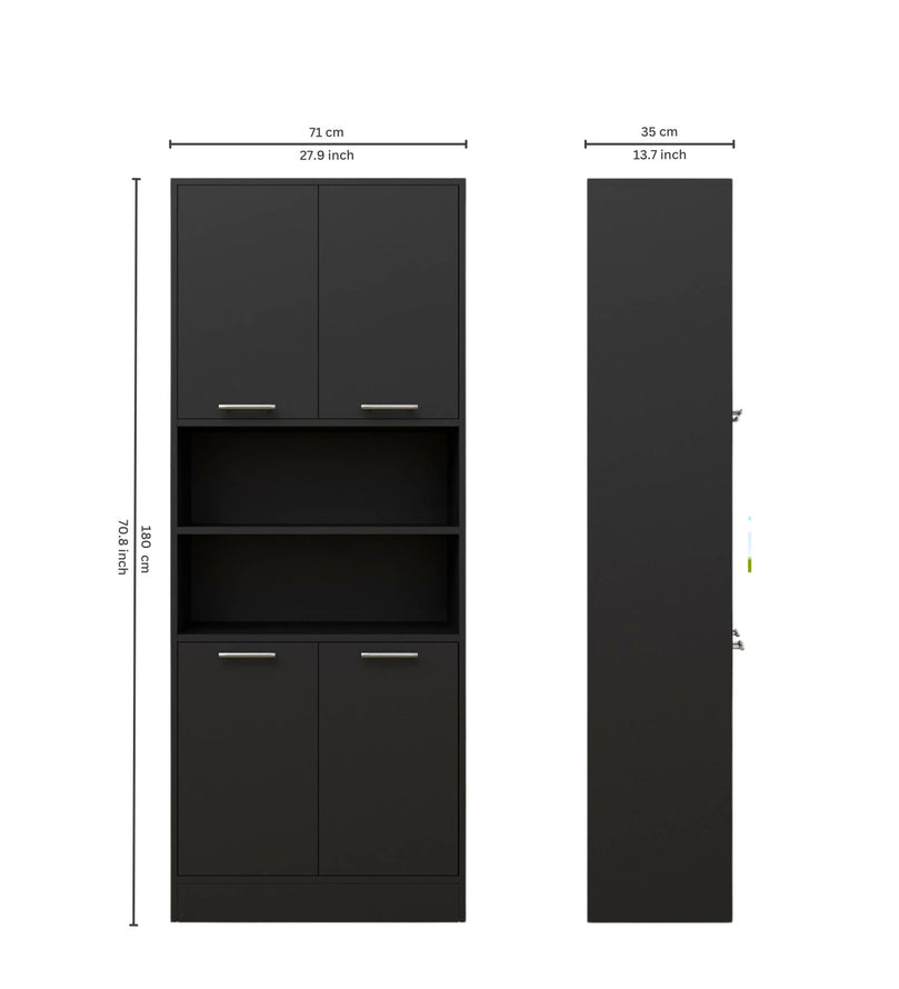 - Spacious Storage Solution – Features four closed cabinets with doors to keep your belongings hidden and dust-free, plus two open shelves for books, decorative items, or daily essentials.