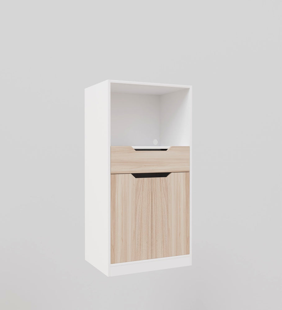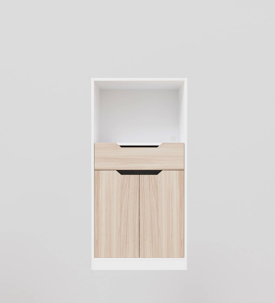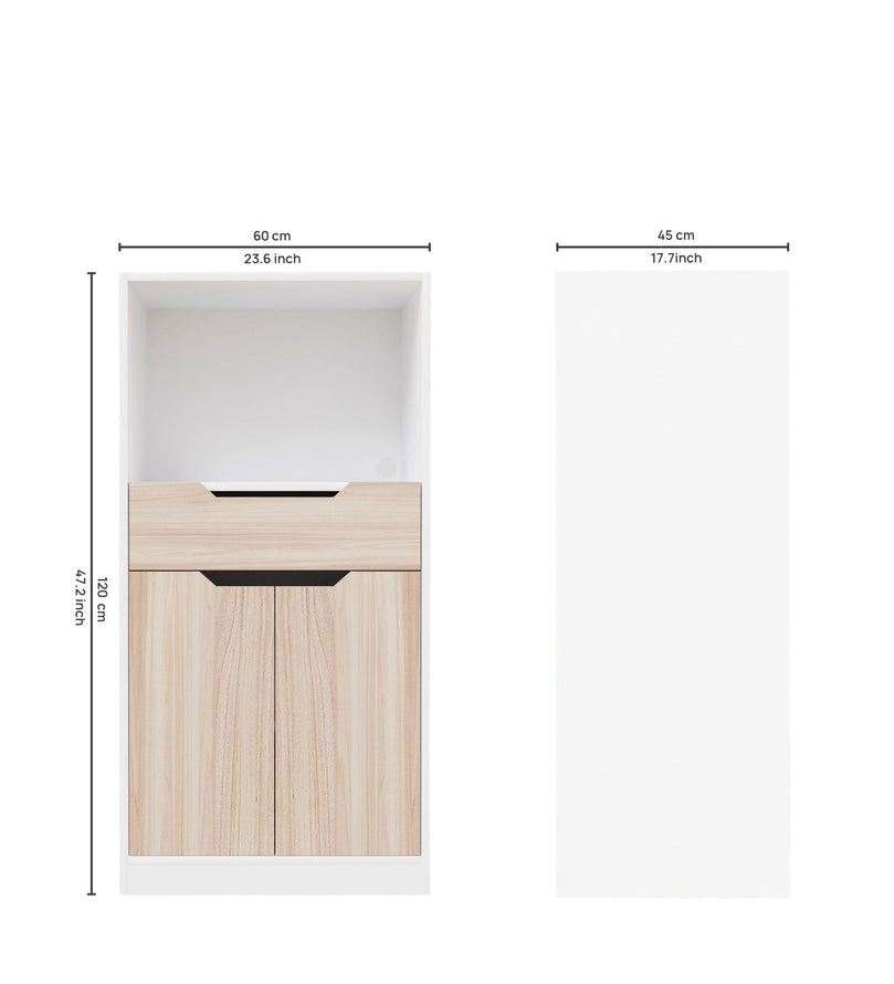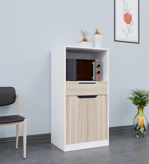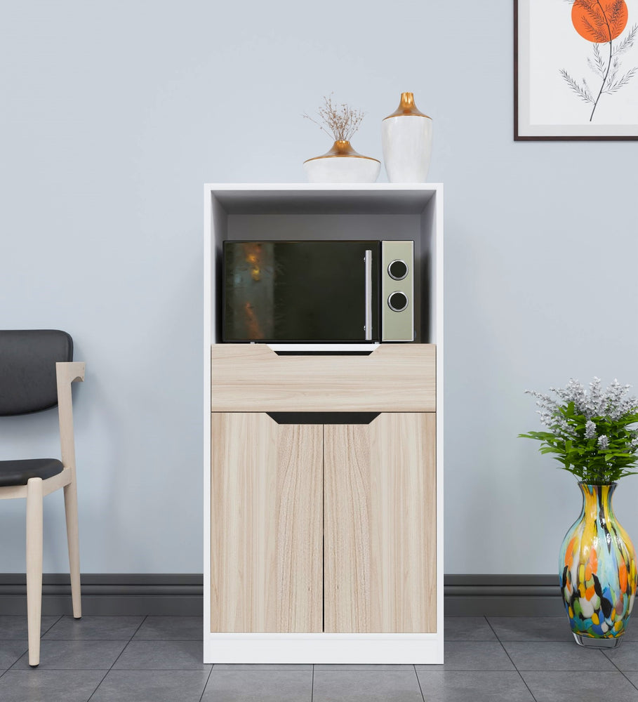 One of the key features of this cabinet is the spacious microwave shelf, which is perfect for storing your microwave or other small appliances. The cabinet also includes a smooth-gliding drawer for utensils and a two-door cabinet for pantry essentials.
