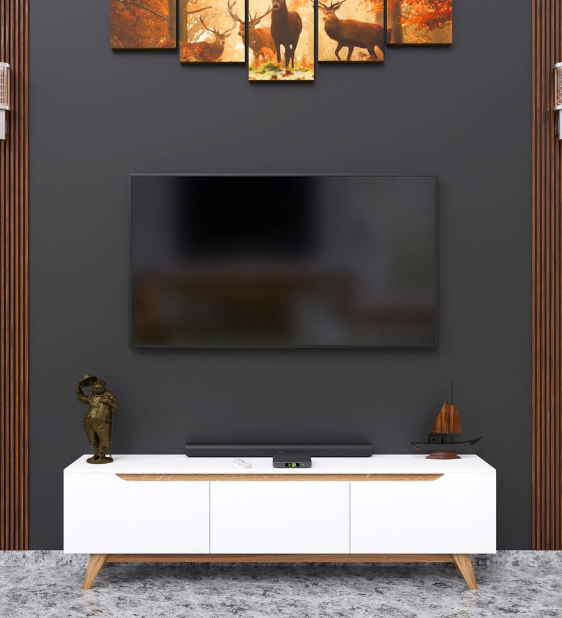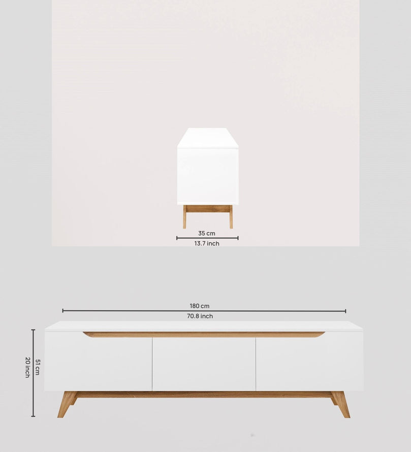 Elevate your living room decor with this modern and elegant D3 TV cabinet. Crafted with a minimalist yet sophisticated design, this entertainment unit not only provides ample storage but also adds a touch of contemporary style to any space. With its sleek white finish accented by natural wood textures, this TV cabinet blends seamlessly with various interior themes, from modern to rustic.