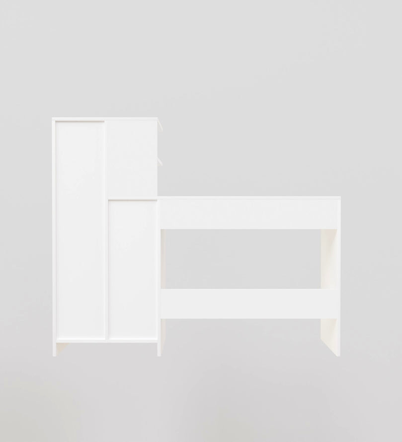 The all-white finish brings a sense of cleanliness and openness, ideal for both compact and spacious interiors.