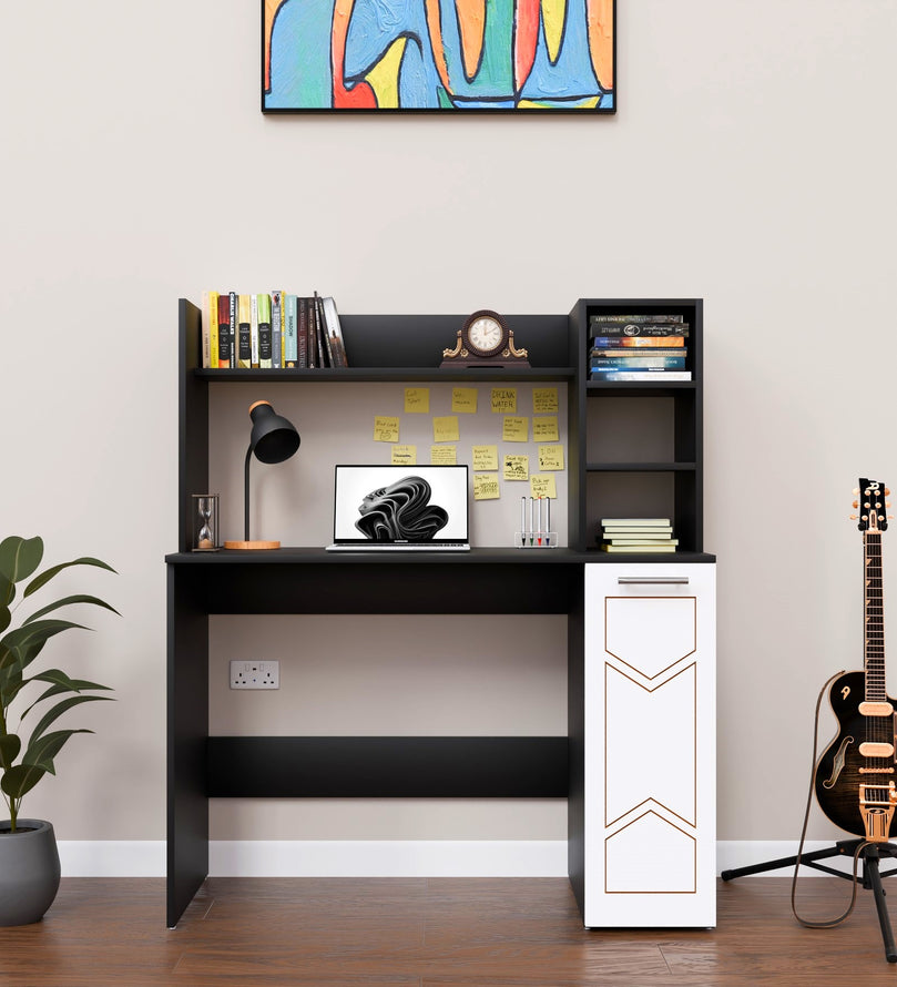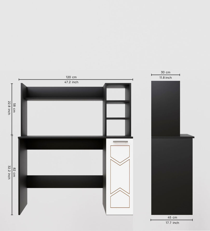 Designed to offer both style and functionality, this modern study table is the perfect addition to any room. With a striking black-and-white finish, it adds a contemporary touch to your home office, study room, or bedroom. The spacious desktop provides plenty of room for your laptop, books, stationery, and other essentials, giving you a comfortable space to work, study, or create.