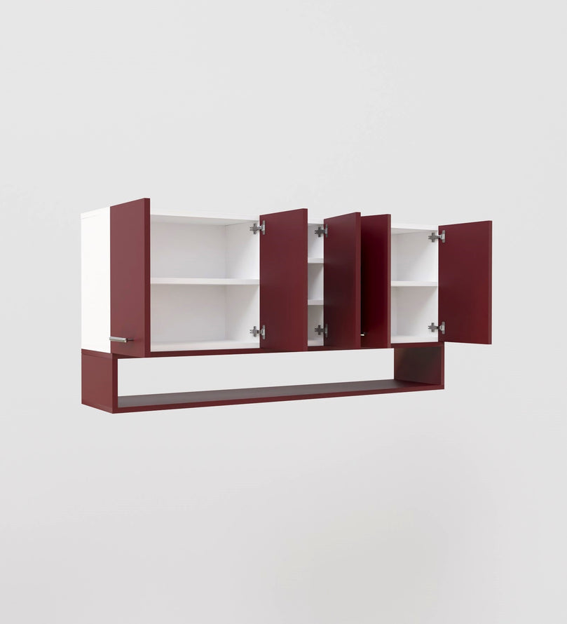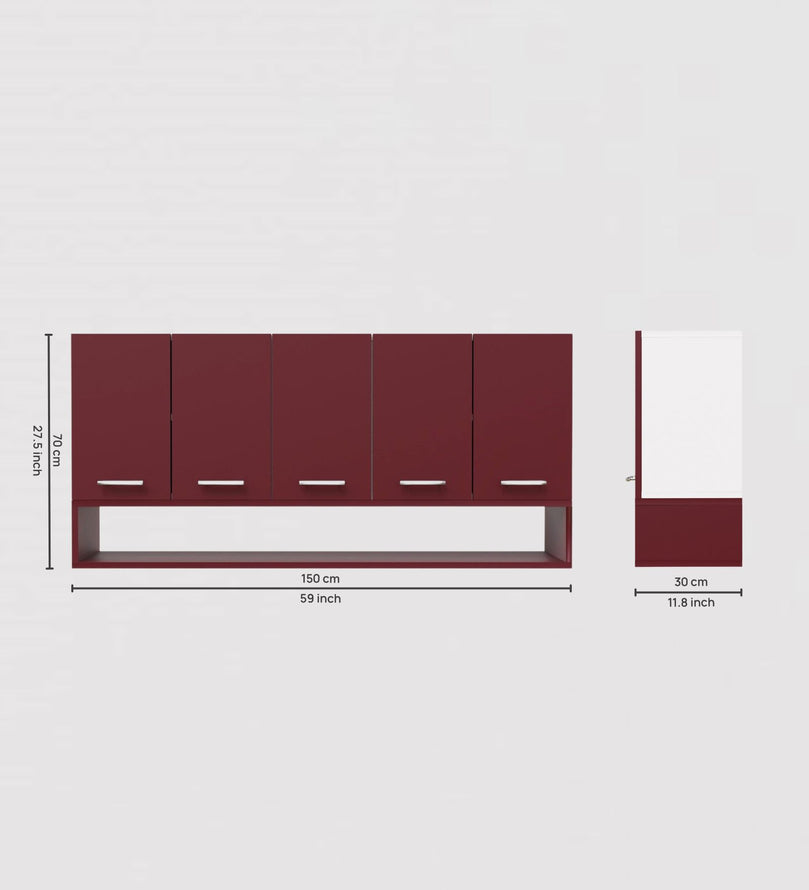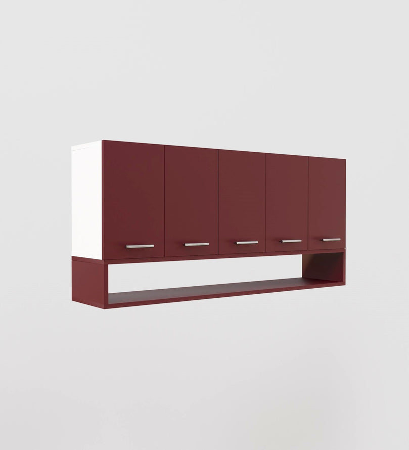 Add a touch of sophistication to your kitchen with this wall-mounted cabinet in a rich burgundy finish. Not only does it enhance the aesthetics of your kitchen, but it also provides ample storage space for all your essentials. From spices to jars and small appliances, this cabinet has multiple compartments to keep everything neatly organized and easily accessible.