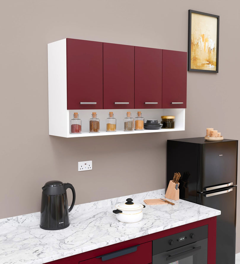 Spydercraft Matte Finish Myra Four Door Kitchen Cabinet - Color: Burgundy and White (Do-It-Yourself Product)