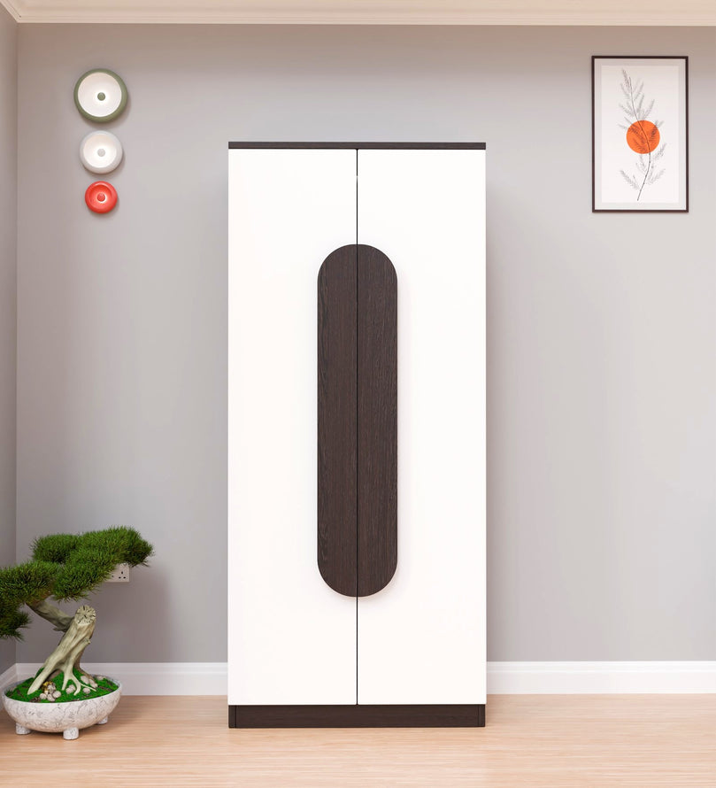 2-Door Wardrobe in Wenge Brown and White Finish | Engineered Wood Storage Cabinet with Vertical Handle | 180 cm Height