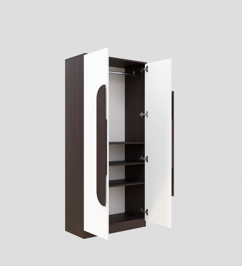 Bring home a perfect mix of contrast and class with this 2-door wardrobe in a bold Wenge Brown and White finish. The dark wood grain texture of Wenge Brown pairs beautifully with crisp white panels, giving your room a refined and modern look. Designed with a sleek vertical handle element and compact profile, this wardrobe is a smart solution for stylish storage in any setting.
