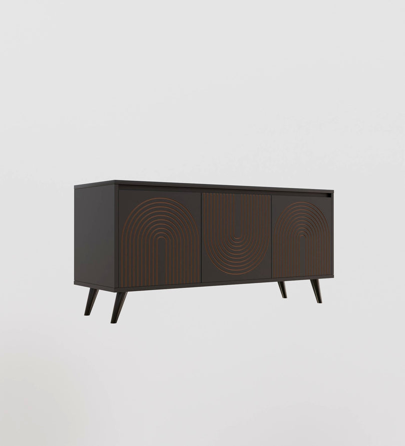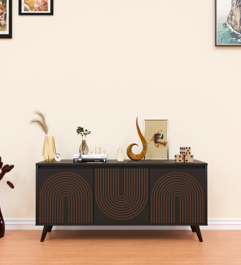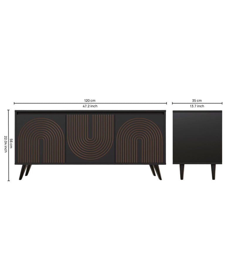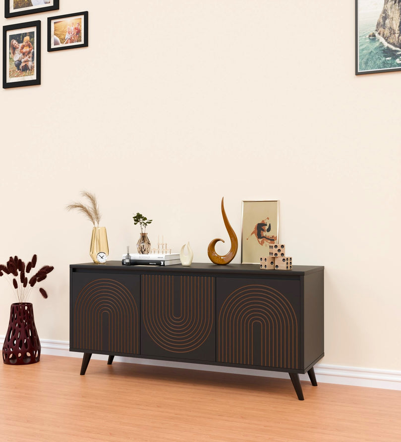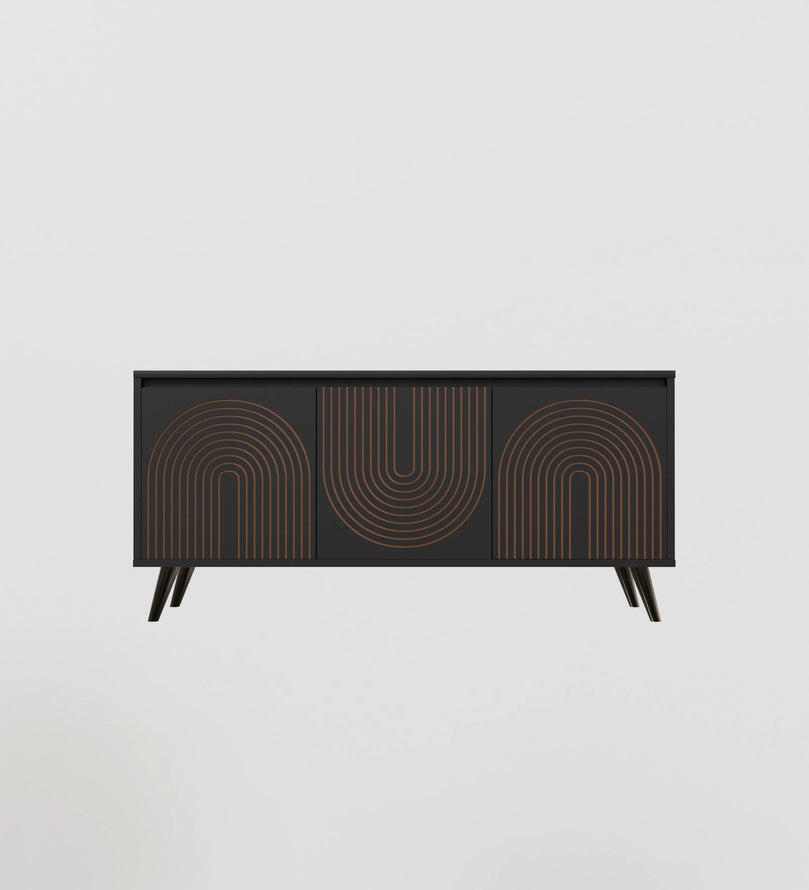 - Elegant Design: The console showcases a unique gold line-art pattern on its doors, adding a sophisticated touch to any living space.