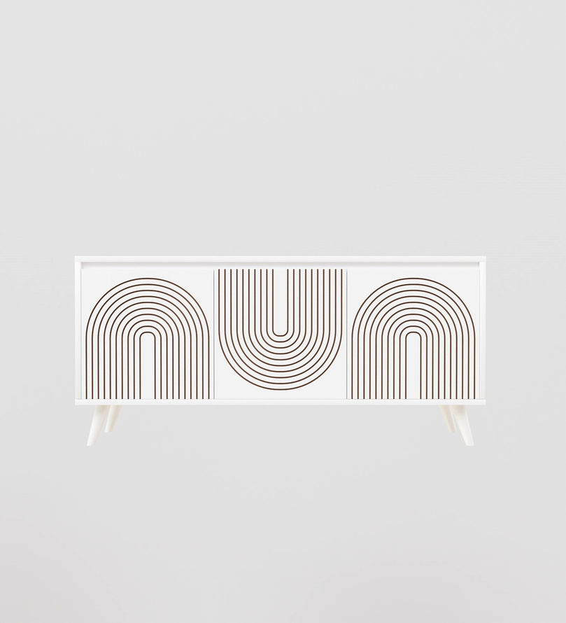 Elevate your home décor with this stunning modern console table, featuring a sleek white finish with elegant gold geometric patterns. Crafted for both style and functionality, this versatile storage cabinet seamlessly blends into contemporary, mid-century, and luxury interiors.