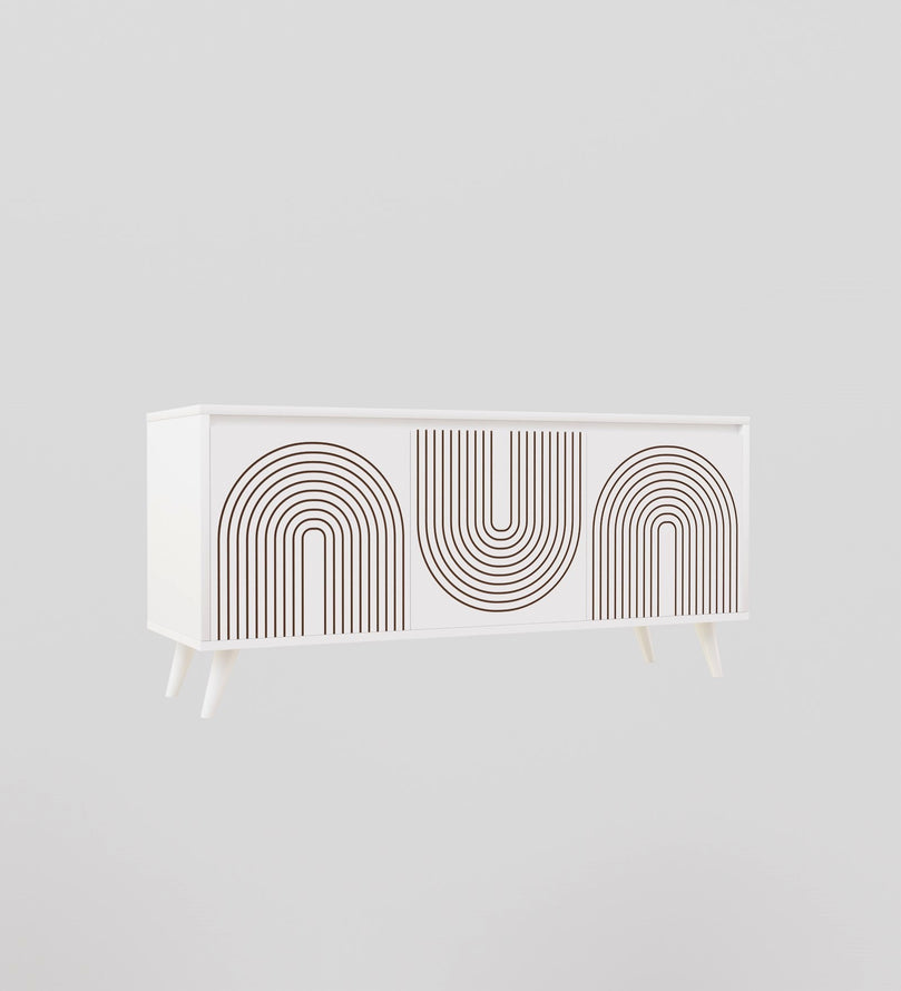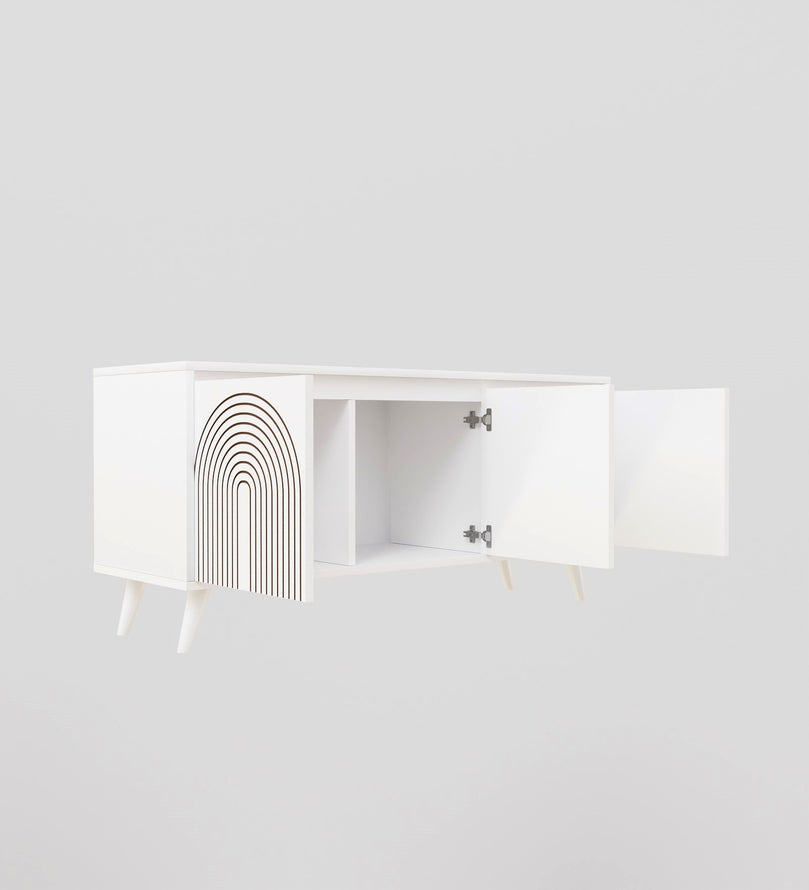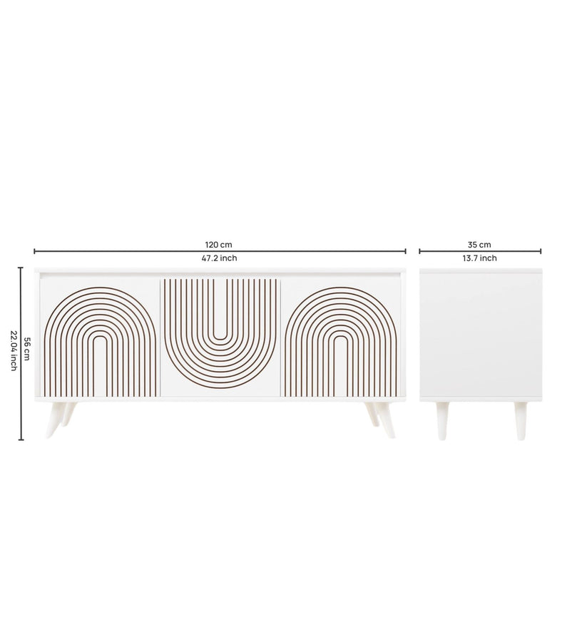 - Elegant Design: The console showcases a unique gold line-art pattern on its doors, adding a sophisticated touch to any living space.