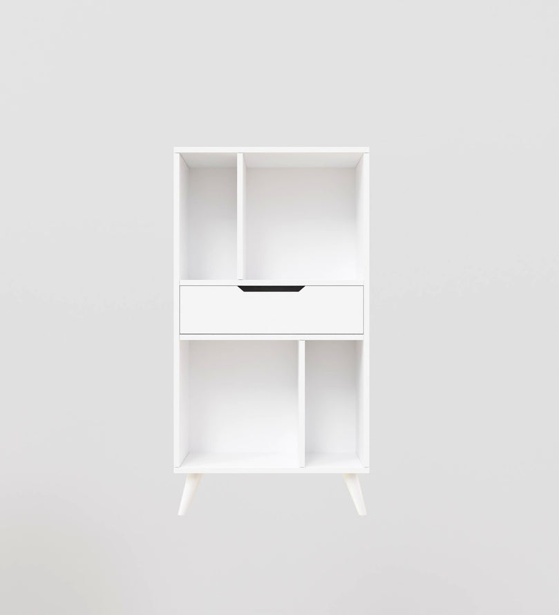 Designed for both style and practicality, this bookshelf from Spydercraft is the perfect addition to any contemporary interior. With its crisp white finish, clean lines, and tapered legs, it creates a sophisticated look that enhances any living space.