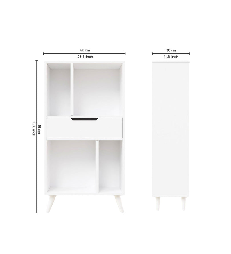 Featuring four open shelves and one smooth-gliding drawer, this bookshelf offers the perfect balance of display and concealed storage. Whether you need to store books, décor, toys, or everyday essentials, this unit has you covered.