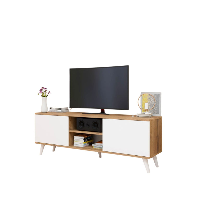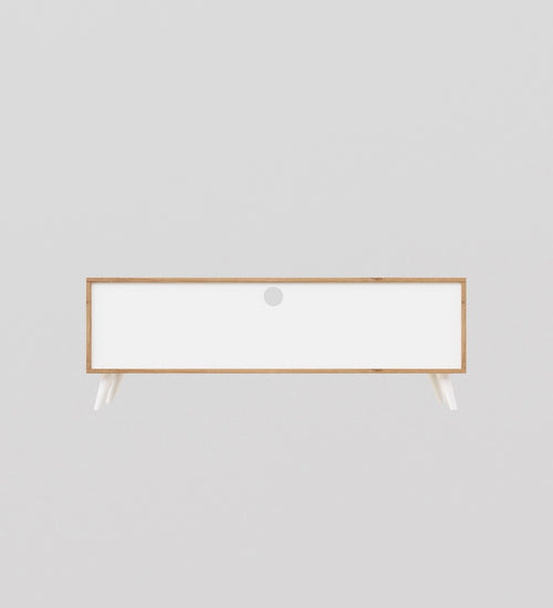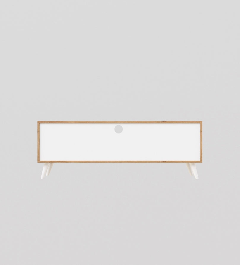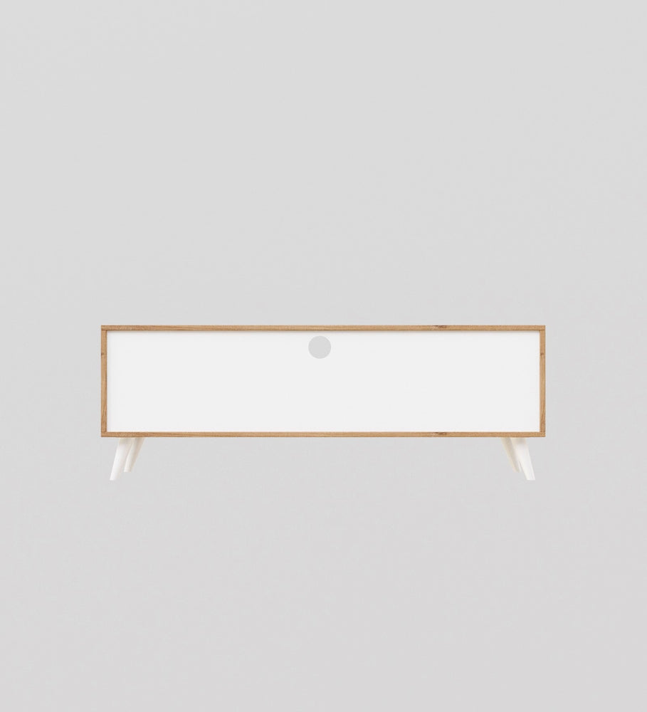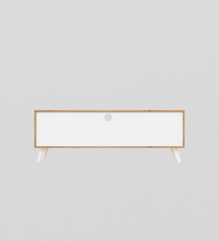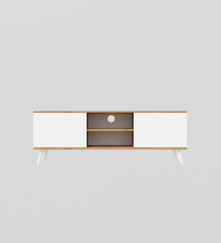 Upgrade your living space with this stylish and functional TV unit in Canyon Oak and White. Designed with Scandinavian minimalism in mind, this entertainment center brings a warm, natural wood tone paired with crisp white cabinet fronts. The sturdy structure, ample storage, and clean lines make it a perfect addition for contemporary homes.