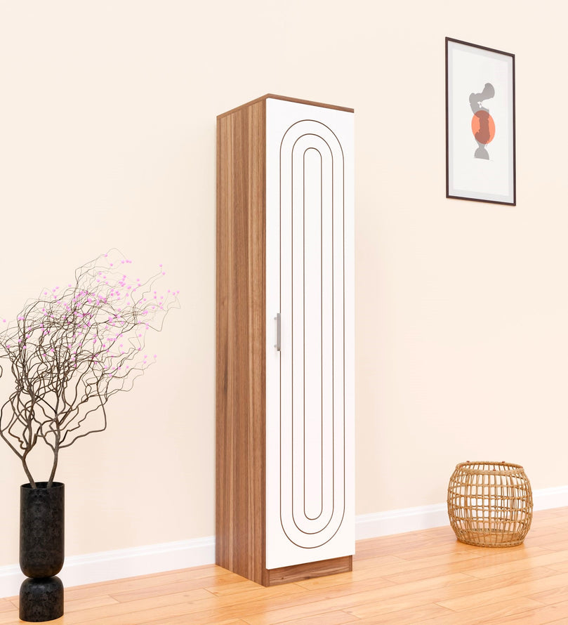 Add a touch of sophistication to your living space with this stylish and functional Single-Door Wardrobe from Spydercraft. Its sleek white finish and elegant geometric line detailing make it the perfect addition to modern interiors. The slim profile of this wardrobe makes it ideal for compact rooms or as an additional storage unit.